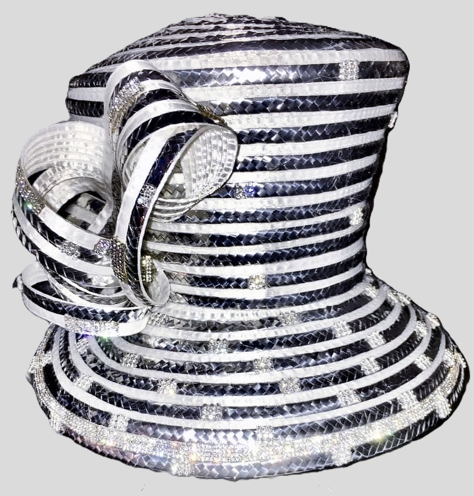 Clara By Addrian Dana 100. Custom Made Ribbon Hat Done in a Solid color with Silver and Rows of Rhinestones.